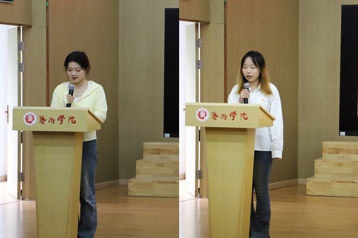 2024 年度青马班优秀学员夏文晴结合自身学习成长经历分享收获与感悟,为学员们树立学习榜样。2025 年度学员王薇表达了对青马班学习的期待与决心,展现艺术学院青年学子积极向上的精神风貌。