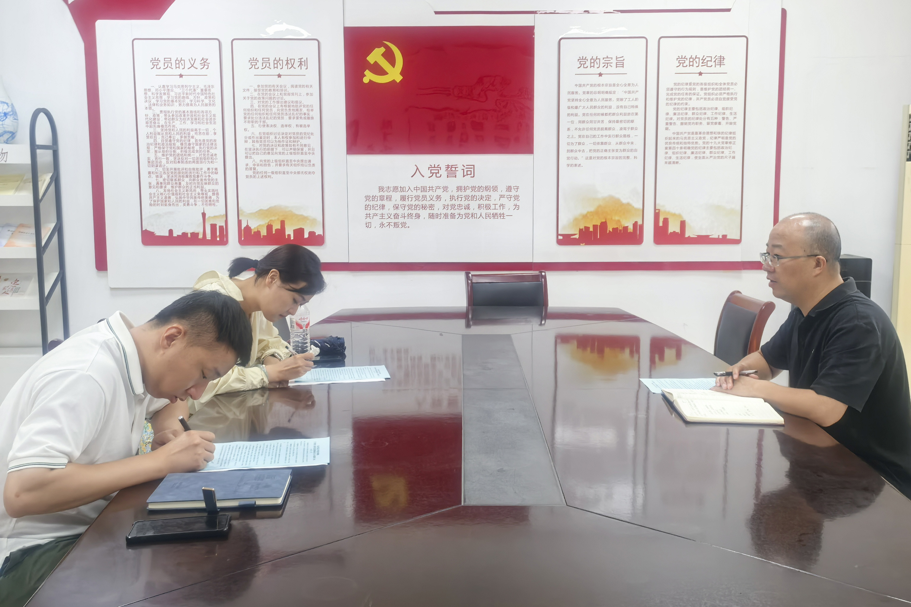 谈话结束,新入职教师张珊、姚锐签订《新时代高校教师职业行为十项准则》承诺书和黄山学院师德承诺书。