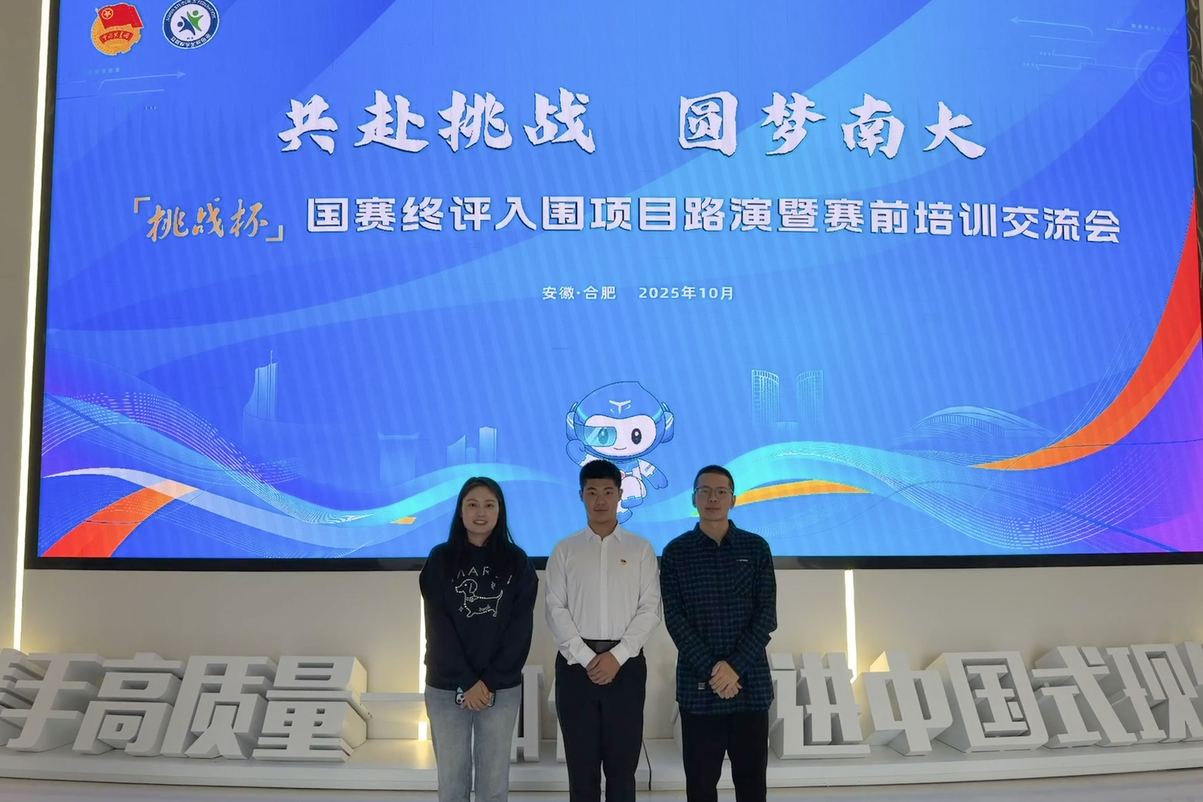 10月16日,由共青团安徽省委、安徽省学生联合会主办的 “共赴挑战 圆梦南大”“挑战杯” 国赛终评入围项目路演暨优秀成果转化交流会,在合肥中安创谷科技园全球路演中心成功举办。艺术学院 “星地协同守护文化根脉” 师生团队受邀参会,凭借清晰的项目展示,圆满完成路演任务。