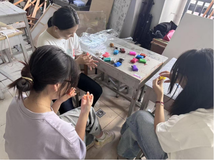 “黏土叙事:重塑情绪的形状”环节,以黏土为载体,帮助学生重新审视压力。活动中,学生们拿起陶土或橡皮泥,将抽象的内心压力捏塑成具体形态:有人将焦虑塑造成布满尖刺的荆棘球,有人将孤独捏成无法闭合的空心盒,有人则把学业压力做成层层堆叠、摇摇欲坠的积木塔。