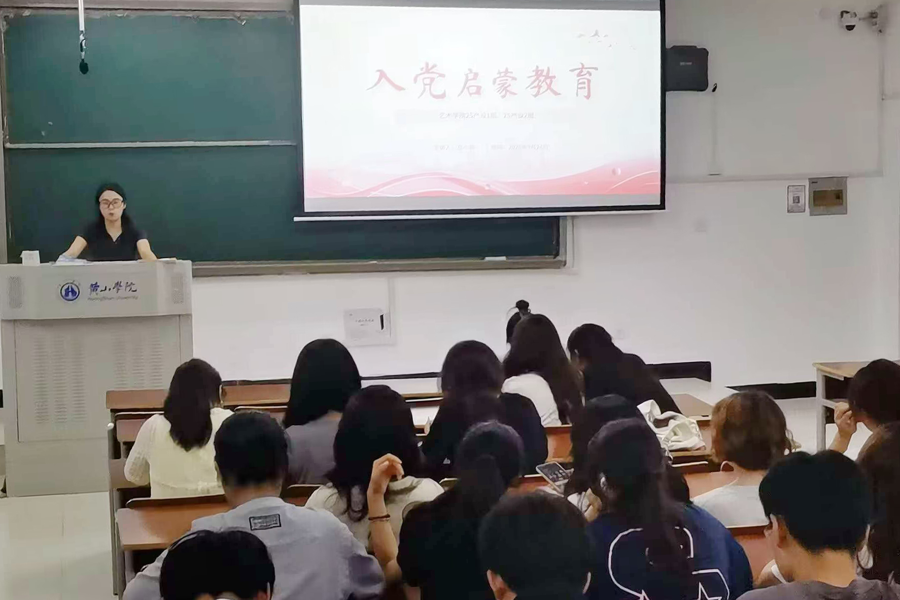 课堂之上,学生党支部书记、辅导员化身“思想引路人”,以入党启蒙教育第一课为重要抓手,用通俗生动的语言系统解读党的基本知识、百年发展历程与规范入党程序,帮助新生拨开思想迷雾,夯实理论认知;银幕之中,《建国大业》《建党伟业》《延安精神的传承与弘扬》等红色经典影片轮番放映,革命先辈的奋斗故事与崇高精神直观呈现,让新生在光影流转间感悟初心使命,厚植爱国爱党情怀。