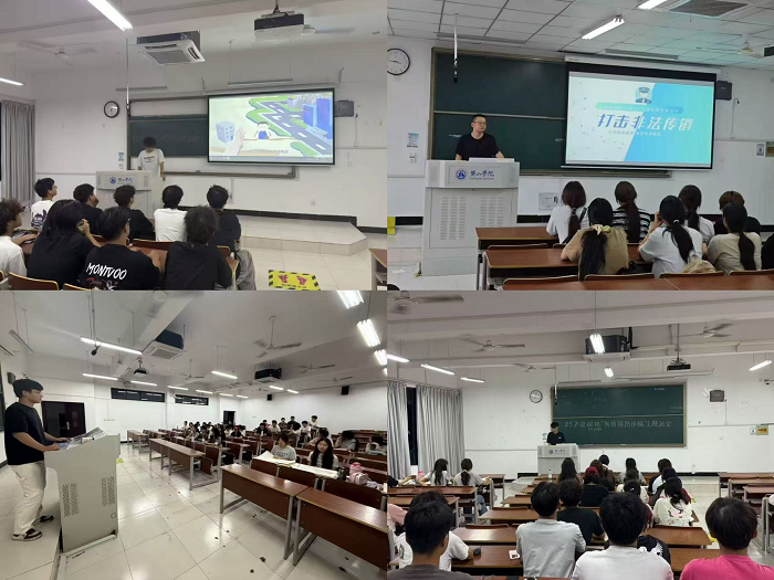 学院以班级为单位,全覆盖开展防范传销主题班会。辅导员与班委提前搜集整理针对高校学生的典型传销案例、新型诈骗手段,制作成PPT 和视频素材。班会现场,通过播放警示教育片、展示真实案例数据,让学生直观感受传销危害;围绕 “如何识别传销”“遭遇传销该怎么办” 等话题组织讨论,学生结合自身认知各抒己见;辅导员系统讲解传销的定义、特征、常见手段及防范技巧,现场解答学生疑问,进一步强化了学生对传销的认知深度,筑牢思想防线。