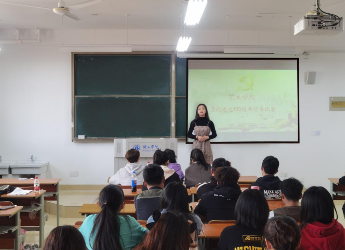 为庆祝建党100周年,重温党的光辉历程,歌颂党的伟大成就,展示青年学子爱党爱国爱社会主义的深厚情怀, 3月26日,艺术学院在文澜楼420室举办了“凝心聚力跟党走,建功立业新时代”主题演讲比赛,经过前期选拔,共有13名参赛者脱颖而出参加本次比赛。