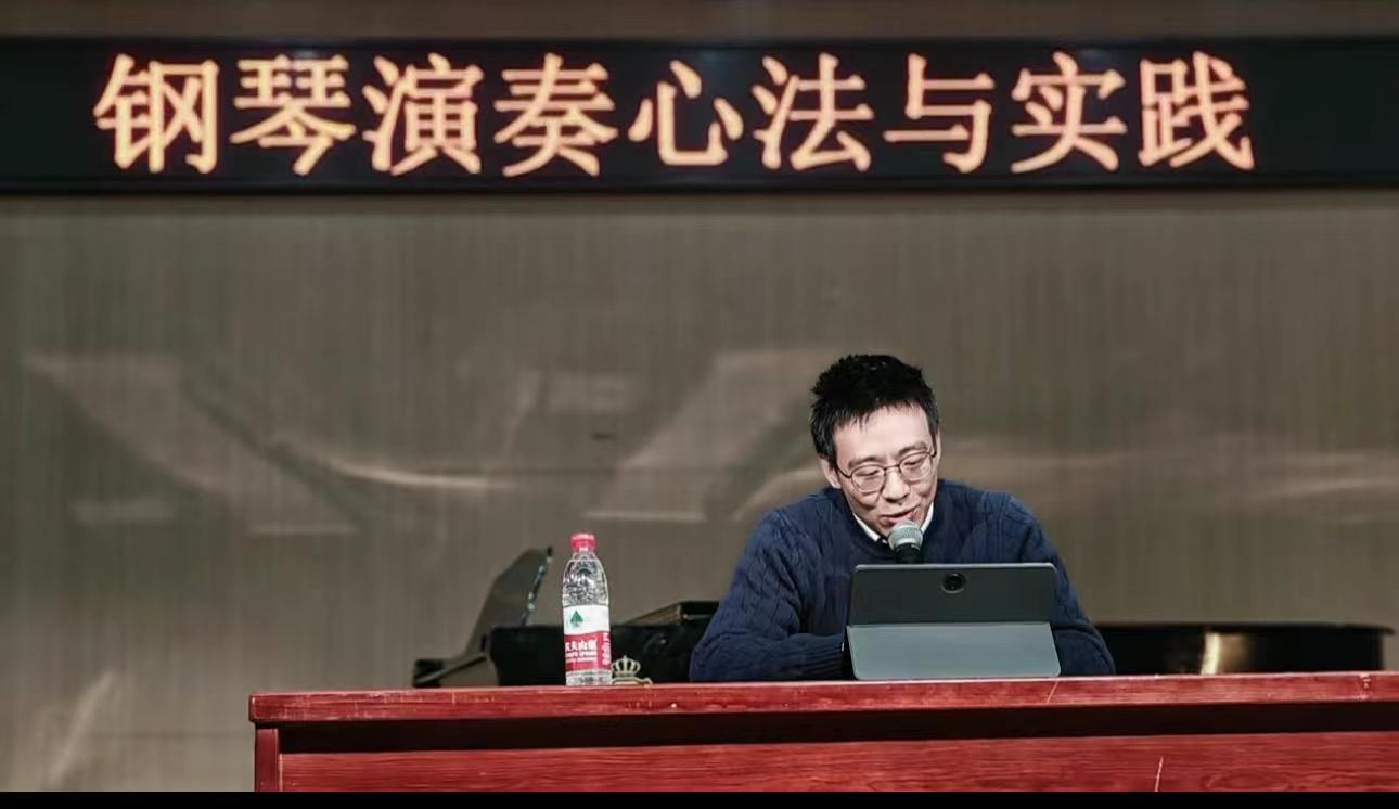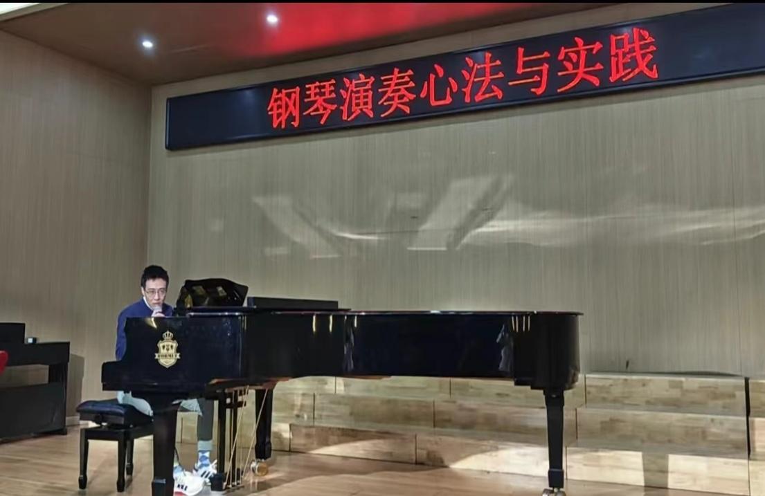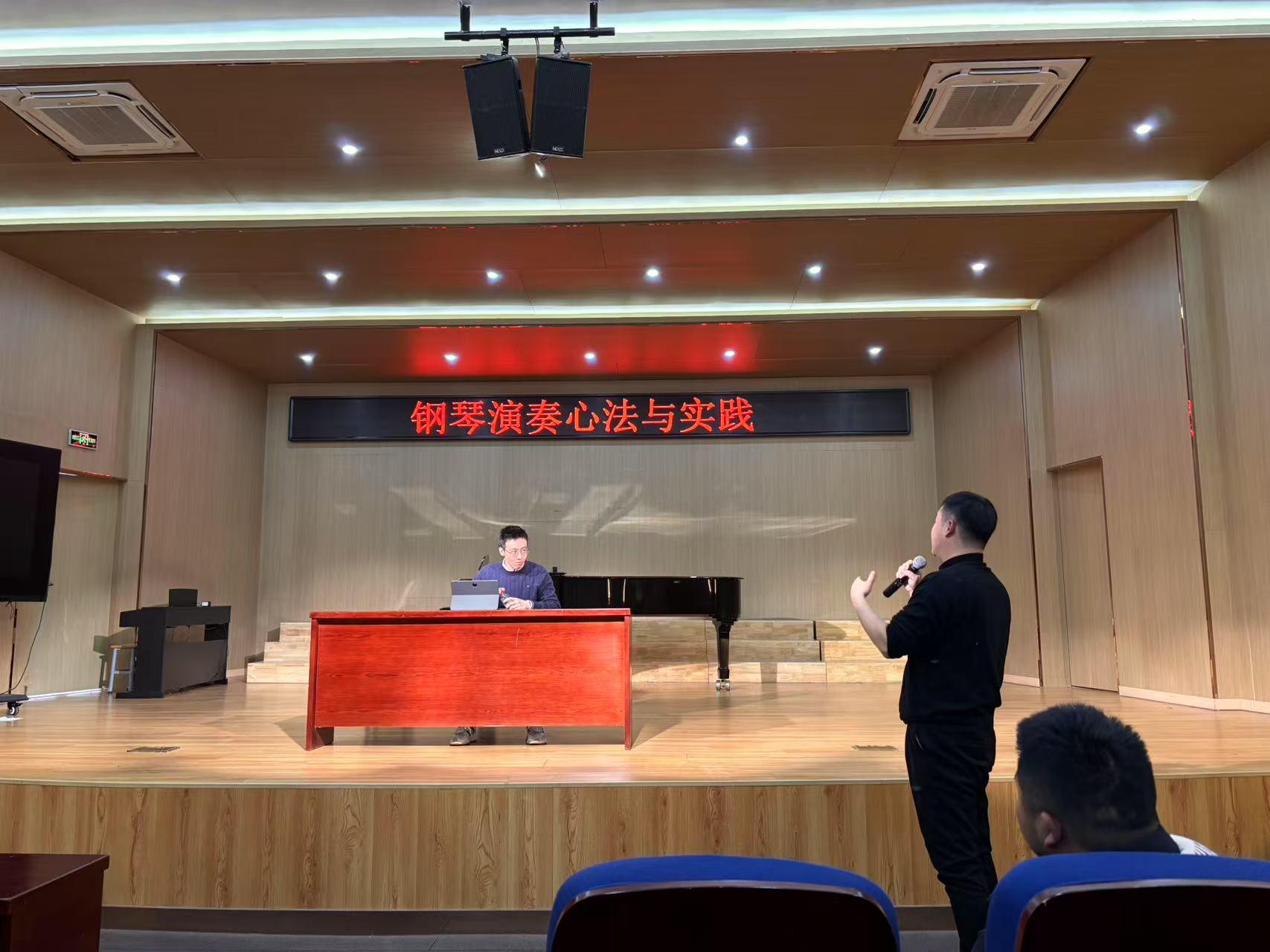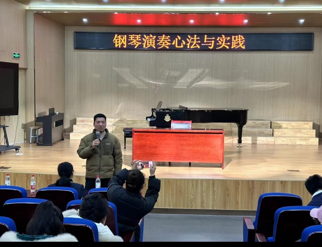 2月23日上午,德国罗斯托克音乐与戏剧大学(欧洲最高音乐学位演奏家文凭)钢琴演奏博士、青年钢琴演奏家陈宇星应邀在黄山学院音乐厅举办主题为“钢琴演奏心法与实践”的专题讲座。本次讲座由艺术学院主持工作副院长史一丰主持,黄山市中小学音乐教师代表,艺术学院部分教师, 23、24级钢琴专业学生参加了讲座。