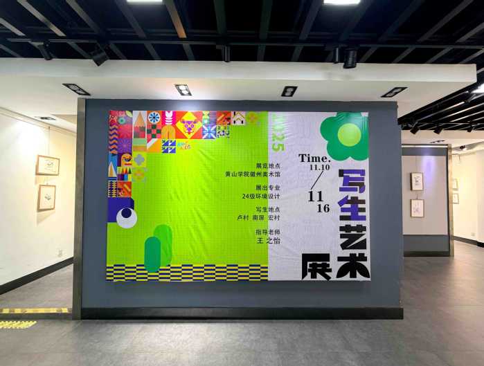 艺术学院24级环境设计专业户外建筑、风景写生画展于11月10日至16日在徽州美术馆一楼学生展厅展出。本次展览共展出作品百余幅,吸引了众多师生前来参观。