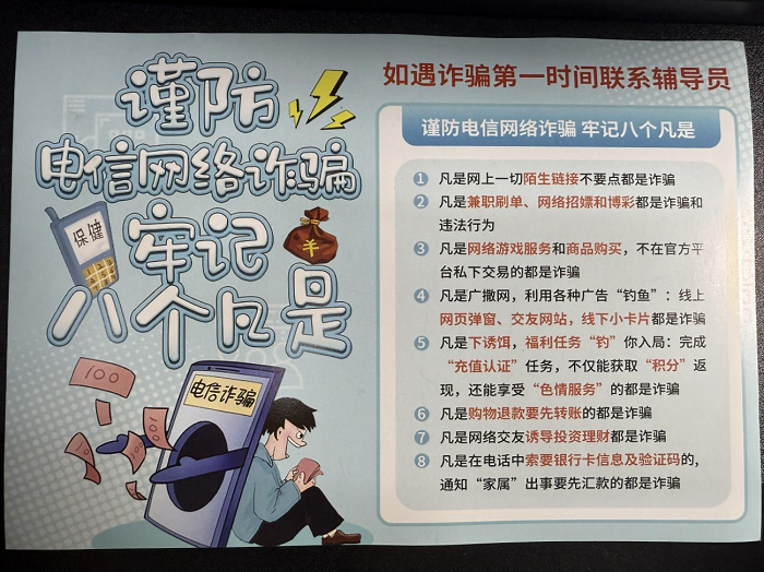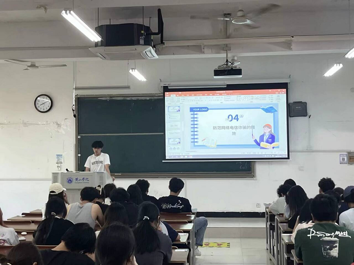 学院以班级为单位,实现防范网络电信诈骗主题班会全覆盖。各班级辅导员提前梳理大学生高发的刷单返利、游戏装备交易、冒充电商客服等诈骗类型,制作成图文并茂的PPT和警示视频。班会现场,通过案例数据解读、诈骗手法拆解、互动讨论等形式,引导学生围绕“如何识别诈骗陷阱”“遭遇可疑情况怎么办”等话题各抒己见,并代领学生完成防电诈知晓书的填报。