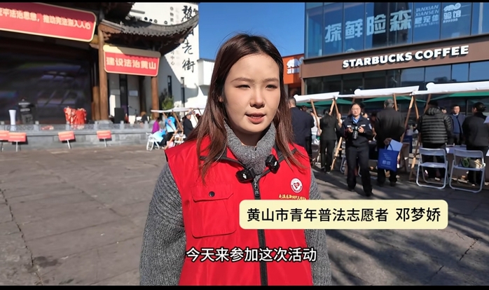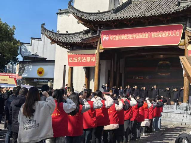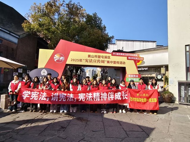 12 月 1 日,黄山市暨屯溪区 2025 年 “宪法宣传周” 集中宣传活动在黄山市黎阳 in 巷热闹启幕。艺术学院学生第一党支部的青年学子们踊跃参与,以实际行动学习宣传贯彻习近平法治思想,为推动宪法精神落地生根、浸润人心注入青春动能。