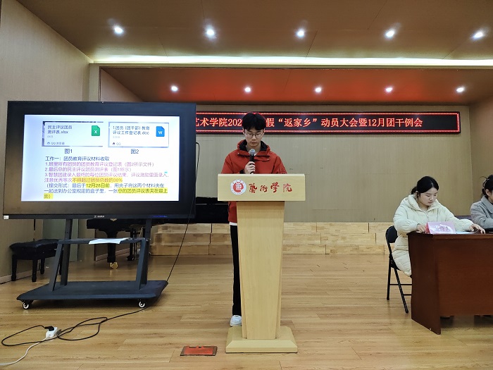 此次会议既是本学期团学工作的总结会,也是寒假“返家乡” 实践活动的动员会,更是后续工作的部署会。下一步,艺术学院青年学子将以此次会议为契机,积极响应号召、主动投身实践,在“返家乡” 志愿服务中锤炼品格、增长才干,以实际行动为学院团学工作高质量发展注入源源不断的青春活力。
