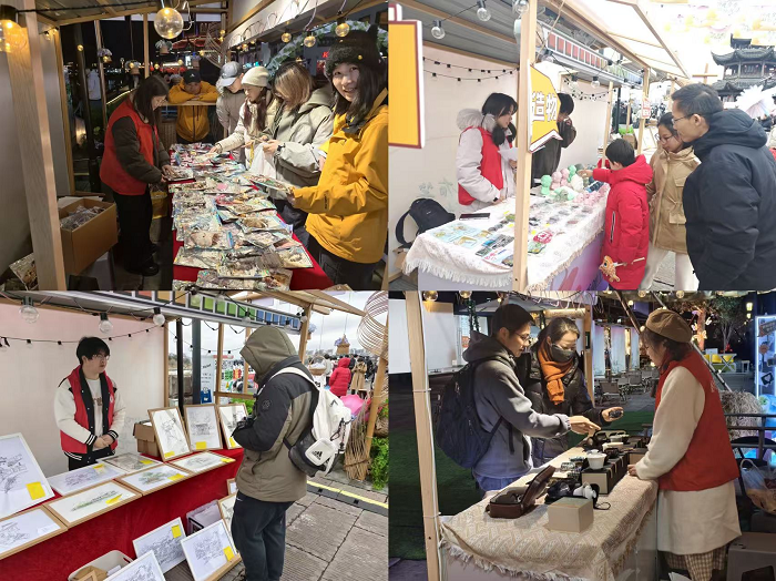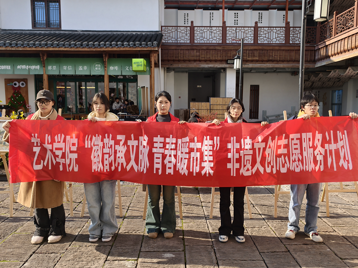 元旦假期,艺术学院立足学科专业优势,厚植青年志愿情怀,在黄山市屯溪河街成功举办为期三天的“徽韵承文脉 青春暖市集”艺术沙龙。这场沙龙集艺术展示、创意交易、文化传播于一体,既为市民游客献上了沉浸式艺术盛宴,更成为高校深化美育普及、助力文旅融合、响应国家文化战略的生动实践。