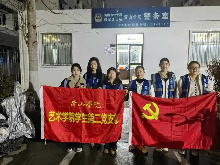 为充分发挥党支部战斗堡垒作用和党员先锋模范作用,切实筑牢校园安全防线,3月17日晚,艺术学院学生第二党支部组织支部党员,联合学校安全管理处开展夜间校园巡逻主题党日活动。